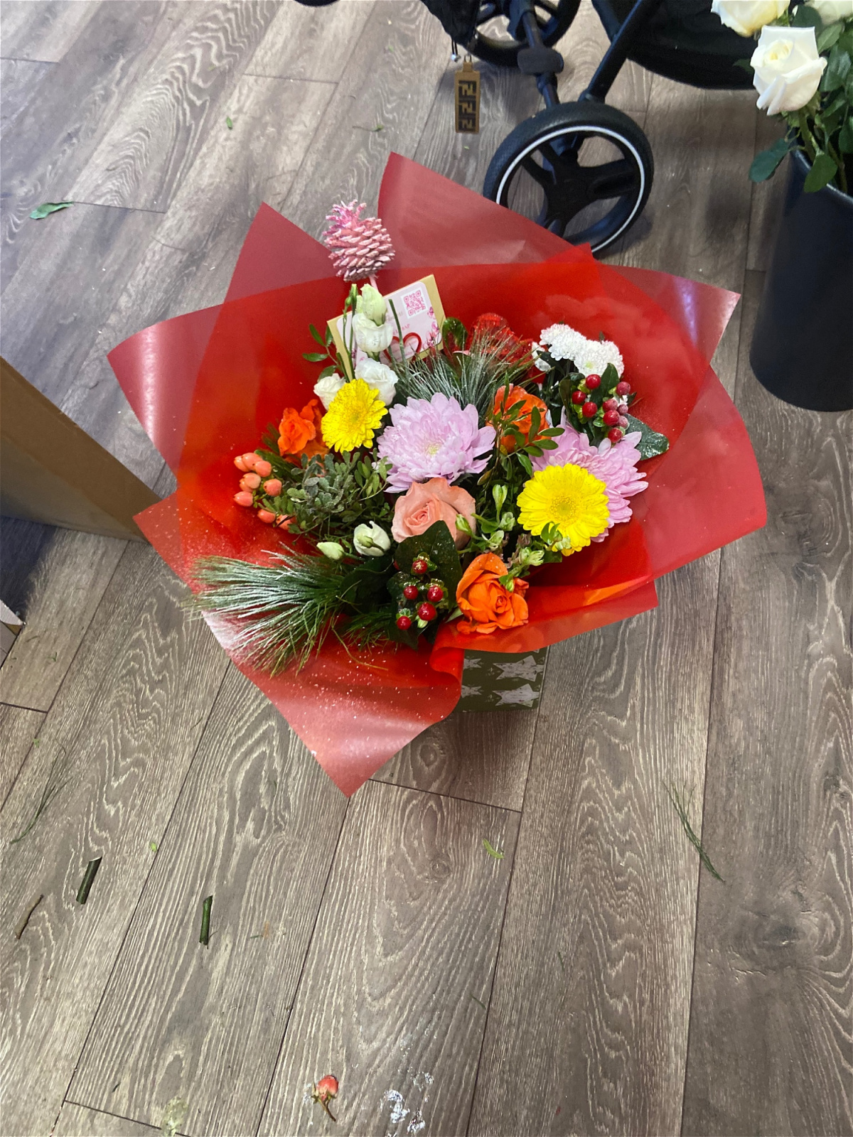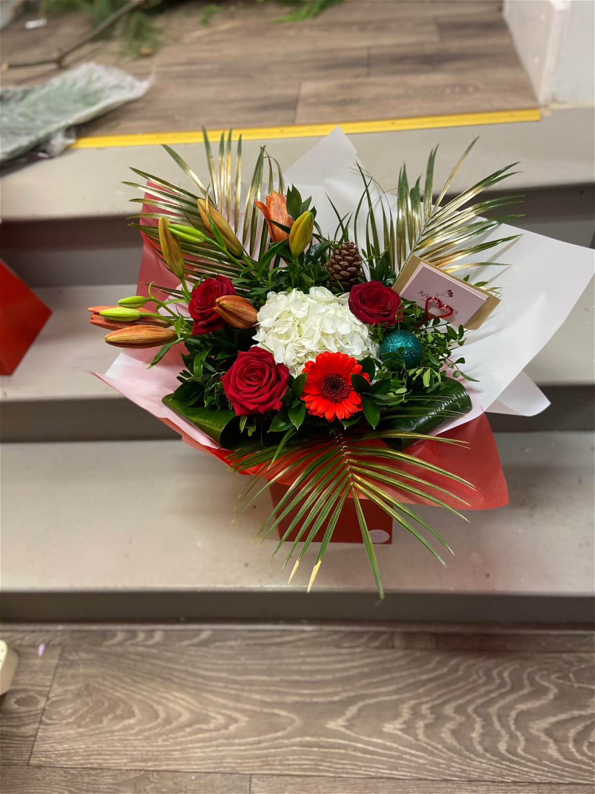 A curated mix of fresh festive blooms, handcrafted in your chosen colour palette for a truly signature Christmas look. All flowers are fresh.